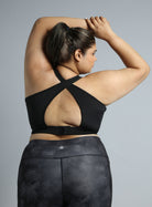 Women's Black Cross Back Hook Training High Support Plus Size Sports Bra
