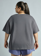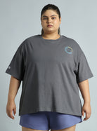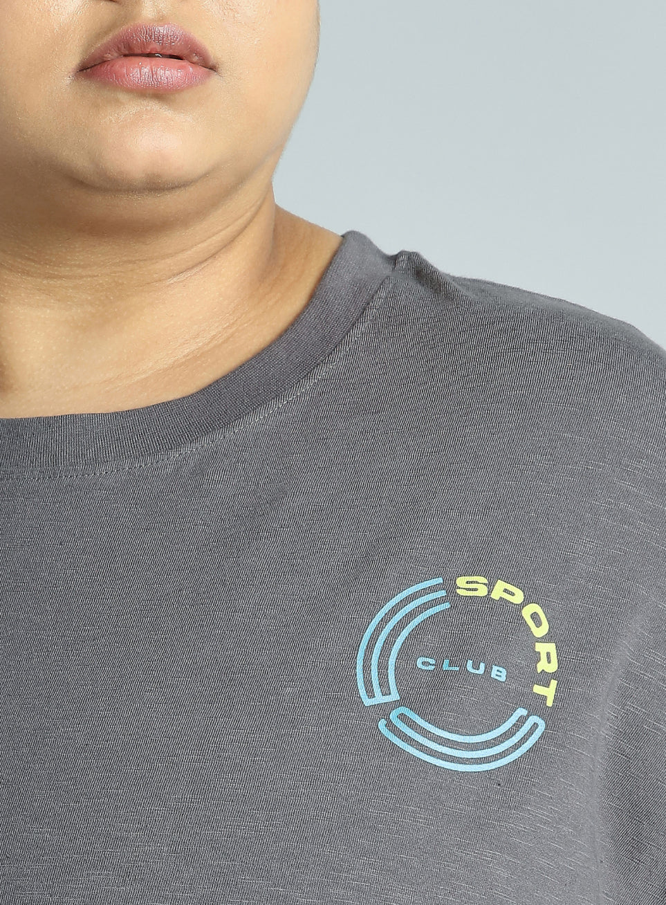 Women's Dark Grey Sports Club Plus Size Oversized Fit T-shirt