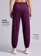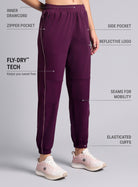 Run your world in the Women's Wine Run Forward Joggers, built to keep pace with every stride. The FLY-DRY™ fabric wicks away sweat for faster evaporation, keeping you dry and cool. Super stretch by design, it delivers full freedom of movement. The elasticated waistband with inner drawcord ensures a secure, adjustable fit. The side and zipper pockets keep essentials close while seams support full mobility.