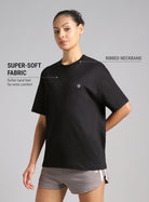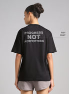 Make a bold statement with the Women's Black Back Print Oversized Fit T-shirt, designed for effortless style. Made from super soft fabric that feels gentle on your skin all day. Features a standout puff print at the back and a ribbed neckband for a clean, structured finish. The oversized fit keeps it roomy and easy to style. Perfect for everyday wear.