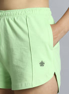 Kick back in style with Women's Lime Move it Shorts. Made from super-soft fabric, they feel smooth and gentle against the skin. The elasticated waistband and an inner drawcord ensure a secure, adjustable fit. The side pockets offer easy access to your essentials, keeping them within reach. Designed with a curved hem that enhances flexibility while the pintuck details add a sleek touch. Crafted with bold prints for a striking, standout look.