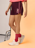 Move with ease and style in Women's Maroon Club Brand Carrier Shorts. Made from super-soft fabric, they feel smooth and gentle against the skin. Featuring an elasticated waistband and an inner drawcord to ensure a secure, adjustable fit. Designed with side pockets for added convenience, keeping your essentials within reach. Crafted with bold branding and contrast taping for a sporty, standout look.