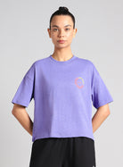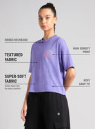 Own your look with the Women's Purple Sports Club T-shirt. The super soft fabric keeps you comfy all day, while the textured finish adds an easy style lift. The ribbed neckband ensures lasting shape and structure. Cut to a boxy crop fit, it’s the perfect match for high-waisted tights or relaxed joggers.