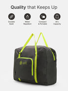 BUILT TO LAST: Crafted with durable polyester and water repellent fabric, it keeps your essentials dry and safe while travelling or on outdoor errands. FOLDABLE CONVENIENCE: Compact and portable, this duffle bag simply folds into a compact form and clips with the carrying hook—perfect for travel, quick errands, or daily use. PACK SMART, MOVE EASY: Designed with a main compartment and a utility pocket for keys or wallet, this duffle bag gives you just the right amount of space for your essentials. SMART DESIGN: Take on the day with the adjustable shoulder straps that offer a customised fit and durable zippers for long-lasting use and all-day comfort, no matter where you’re headed. SPACIOUS STORAGE: With a handy 30 L capacity, it carries your essentials without weighing you down.