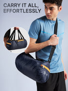 Meet your perfect gym companion — the foldable gym bag designed for style, performance, and everyday convenience. This lightweight gym duffel bag doubles as a travel bag, sports bag, or fitness duffle bag, making it ideal for workouts, travel, or daily errands. Crafted from durable, water-resistant material, this gym bag keeps your essentials safe and dry, while its strong zippers and adjustable shoulder strap offer security and comfort on the go. Use it as a crossbody gym bag, gym tote, or weekend travel duffle bag — its compact yet spacious design with 20 L capacity provides room for your clothes, shoes, and gear, just like a large gym bag. The handy side pocket allows quick access to your must-haves, and its sleek, sporty aesthetic makes it a stylish gym bag for both men and women. When not in use, simply fold this versatile duffel bag for easy storage — the ultimate unisex gym bag that transitions effortlessly from workout bag to travel duffle to everyday carry.