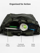 Work to Play Laptop Backpack 35L - Water-Repellent, Multi-Functional Bag with Trolley Sleeve & Shoe Cover Olive