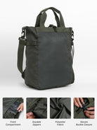 THREE WAYS TO CARRY: Adapt your carry style to the moment — wear it across the body for hands-free ease, over the shoulder for a casual look, or by the handles for a smart, professional finish.