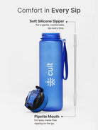 cult Motivational Bottle 1L Unisex Time Mark Sipper with Straw Blue
