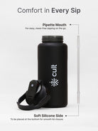 cult Motivational Bottle 2L Unisex Time Mark Sipper with Straw Black