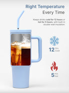 TEMPERATURE LOCK: Built with double-wall insulation, it keeps drinks cold for up to 12 hours and hot for 5+ hours, so you can enjoy every sip just the way you like it, anytime. SMART DESIGN: Designed with a screw lid and leakproof lid to prevent spills, and an easy grip handle for easy carrying.