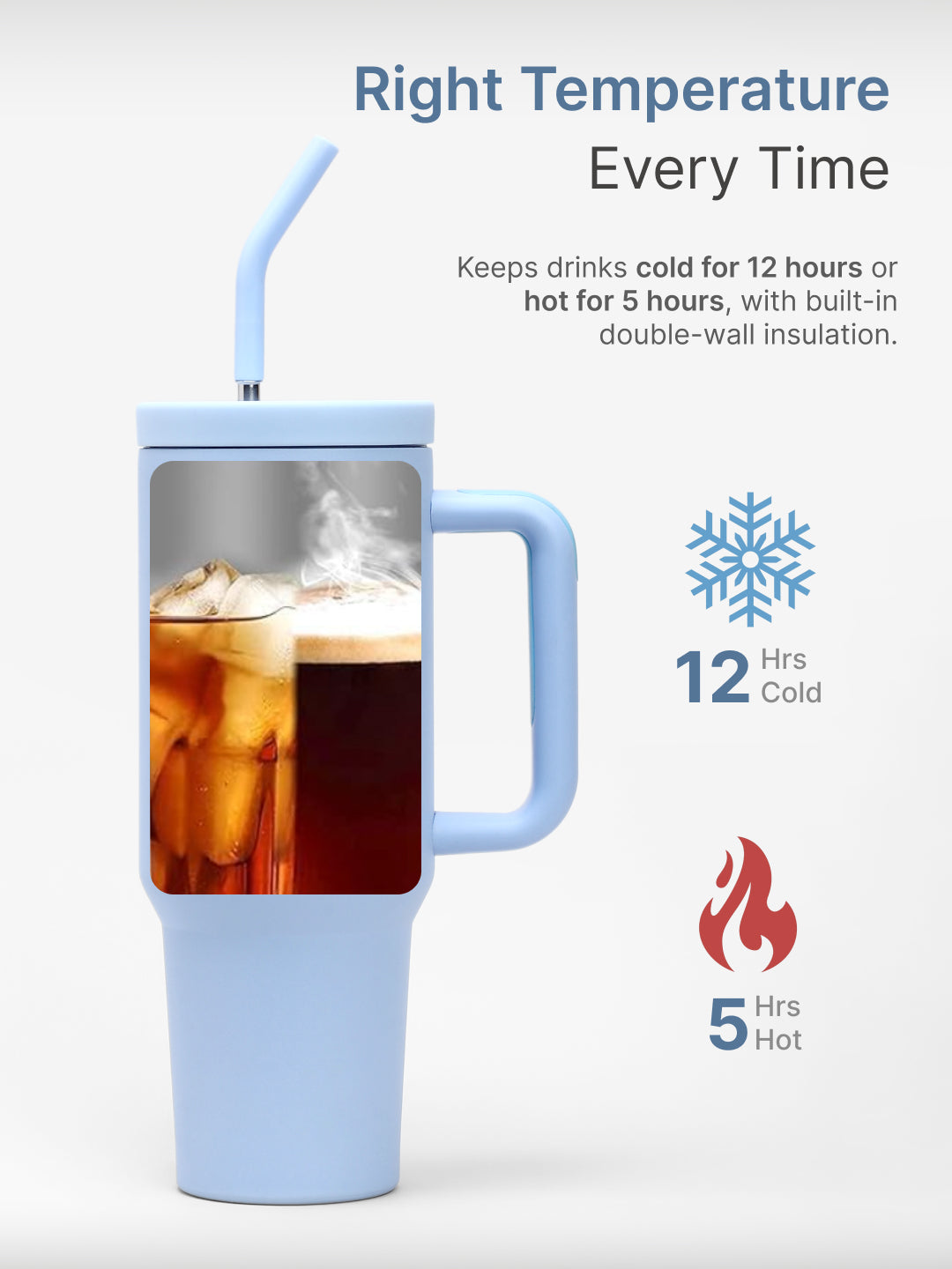 DURABLE: Crafted from high-grade stainless steel with 1.2 L capacity, this BPA-free tumbler is sturdy and built to last. Perfect for everyday use.