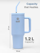 cult Tumbler 1200ML Steel Straw with Straw Cap and Cleaner Unisex Blue