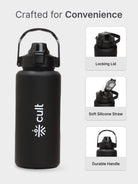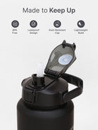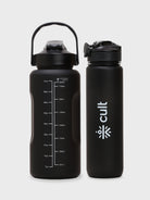 - this black bottle set includes 1L and 2L options. Made from BPA-free material with motivational markers to encourage daily water intake. Perfect for home
