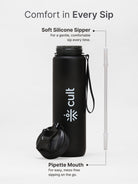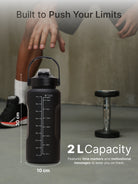 Sleek and bold, this black bottle set includes 1L and 2L options. Made from BPA-free material with motivational markers to encourage daily water intake. Perfect for home, gym, or office use.