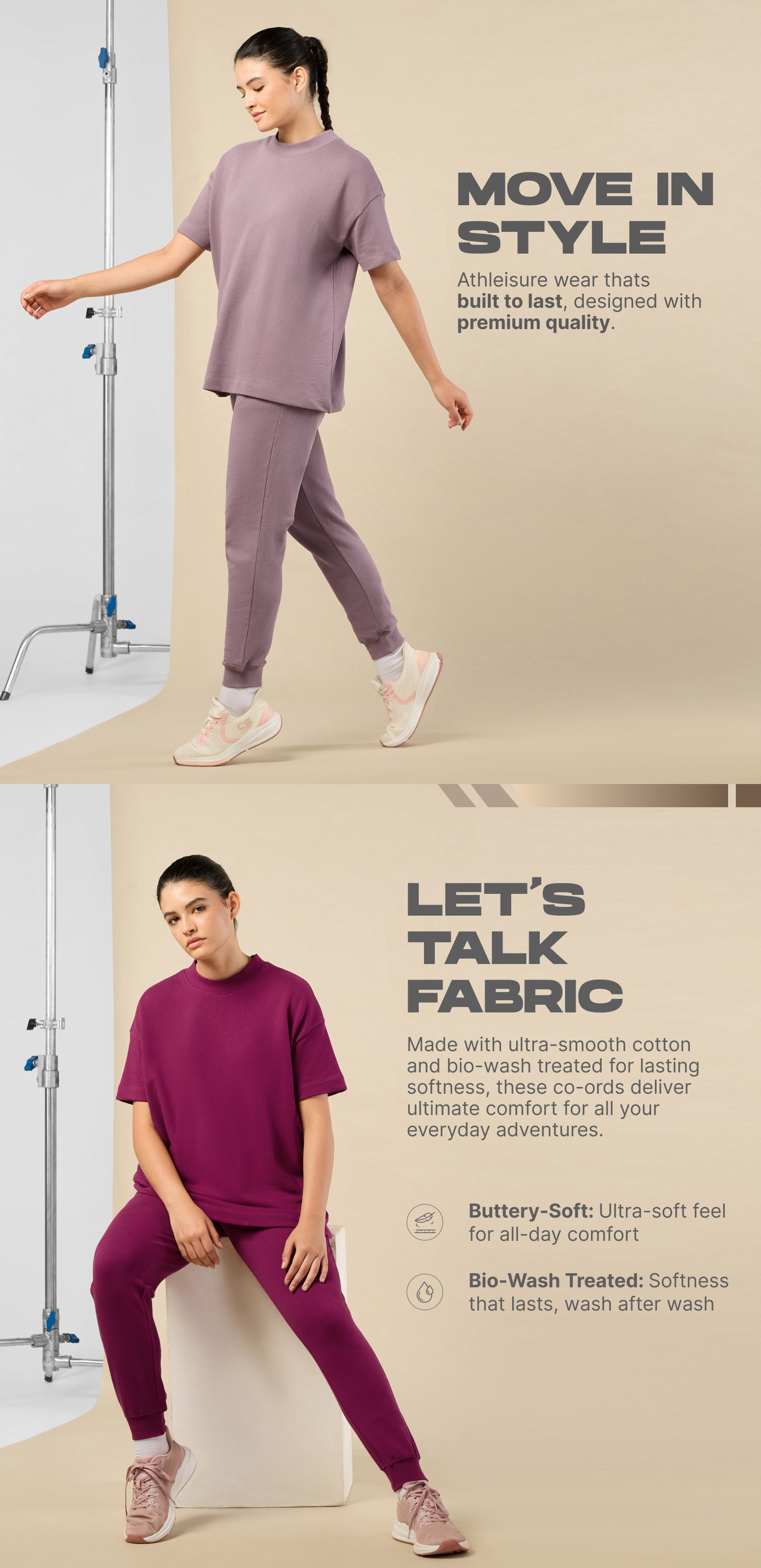 Stay effortlessly cool and endlessly comfortable with the Women's Lifestyle Cotton Magenta Co-ord Set. A butter-soft feel wraps you in all-day comfort, while the oversized top brings that relaxed, easygoing vibe. The bottoms feature an elasticated waistband with an inner drawcord for a snug fit, plus side pockets to keep essentials close. Whether lounging or heading out, this set does it all in style!