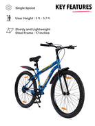 ROKKPRO26TBLUE Steel Single Speed 26 inch Mountain Cycle with Single Wall Rim and Rigid Fork