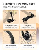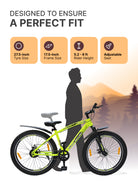 The High-quality double disc brakes on both front and rear wheels ensure stable and quick braking. The disc brakes help you navigate safely during challenging situations such as a crowded market. || The bike has a sturdy and reliable steel frame that can brave rough riding conditions and terrains. The top-notch construction quality ensures that the bike has a long lifespan. || The bike comes packed with light and strong double walled alloy rims along with 27.5 inches wide tyres that supports comfortable riding and a major performance advantage on the road.|| Easily adjustable saddle height and an attractive grip offer superior comfort and well cushioned ride.||The front suspension provides stability to the bicycle and can absorb any bumps and dips encountered on your path for a smoother ride . It also provides strong pedal powers for strong acceleration on straight surfaces and uphill climbs || Made from high quality steel frame these bikes are durably made to long last offering you excellent service life. Enjoy a quick ride to your work space, neighborhood rides, or trails on this Urban Terran Cycle || 1 Year Warranty On Frame and 6 months Domestic Warranty on Manufacturing Defects