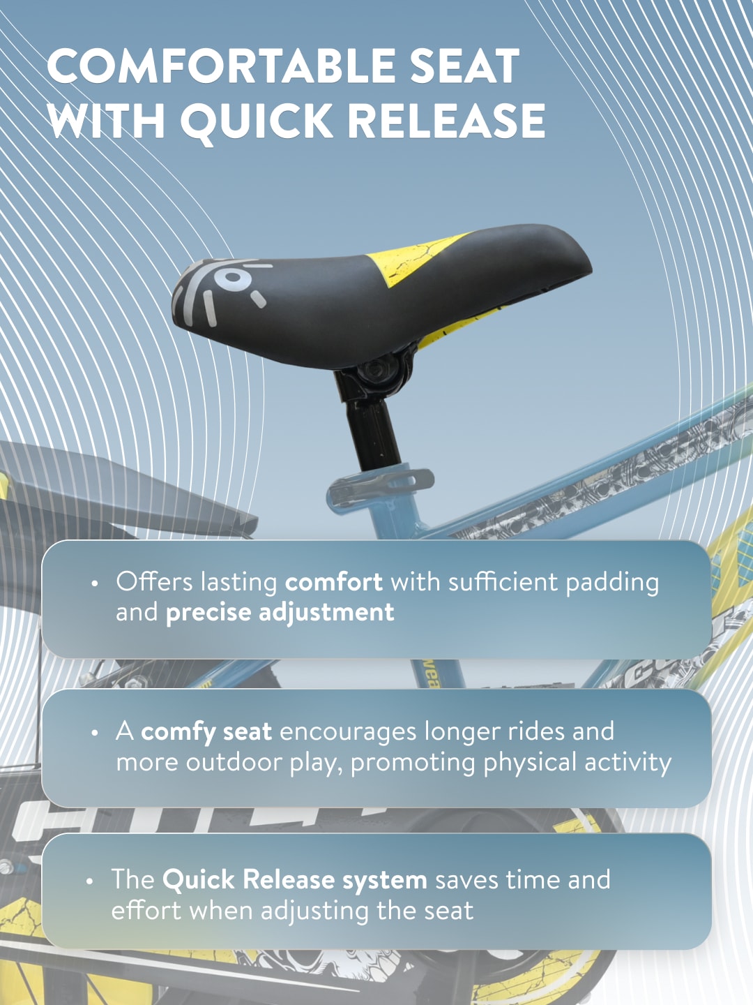Ease of Riding: The 16-inch wheel size strikes a balance between stability and maneuverability. It provides enough stability for kids to feel secure while also being nimble enough for them to handle various terrains and riding conditions.|| Growth Potential: Many 16-inch bikes come with adjustable components such as seat posts allowing the bike to grow with the child. This adjustability ensures that the bike remains comfortable and safe as the child grows taller || Increased Durability: 16-inch models often feature stronger frames and components capable of withstanding the more adventurous riding styles that older children may pursue. || Safety Features: Like smaller bikes, 16-inch cycles usually come with essential safety features such as hand brakes and chain guards. These features help teach children safe riding habits and enhance visibility || Comfort: The sturdy and durable wheels typically offer a smoother ride over bumps and uneven surfaces compared to smaller bikes, enhancing overall comfort for longer rides.