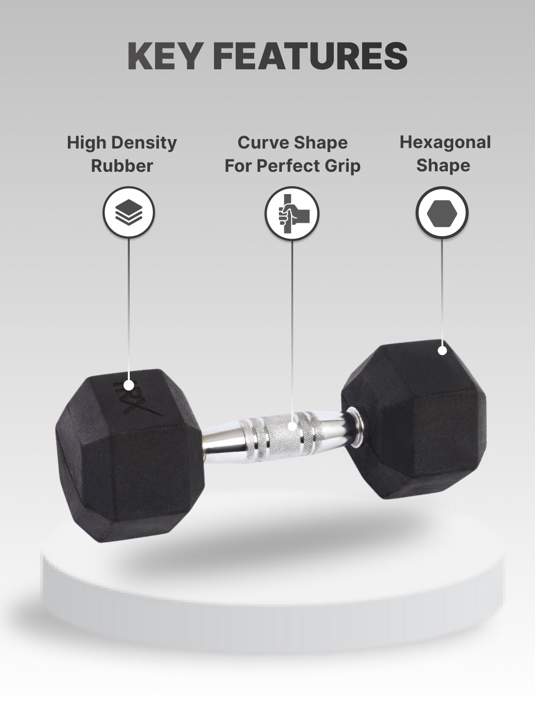 Cult 10Kg Hex Dumbbells For Home & Gym Exercises, Set of 2, (Black)