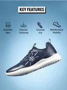 The Cultsportone Racer running shoe adds functionality and style to your running routine.Designed with breathable mesh, the engineered upper enhances your comfort during long running sessions. Added protection is given to your toes by fusing in the toe area. This shoe features a rubberised EVA outsole with a high abrasion compound that ensures durability at every pace, and a heel collar that protects the ankle. Superior cushioning and rebound are provided by German-engineered insoles. Take to the streets in this shoe that seamlessly blends style and functionality.