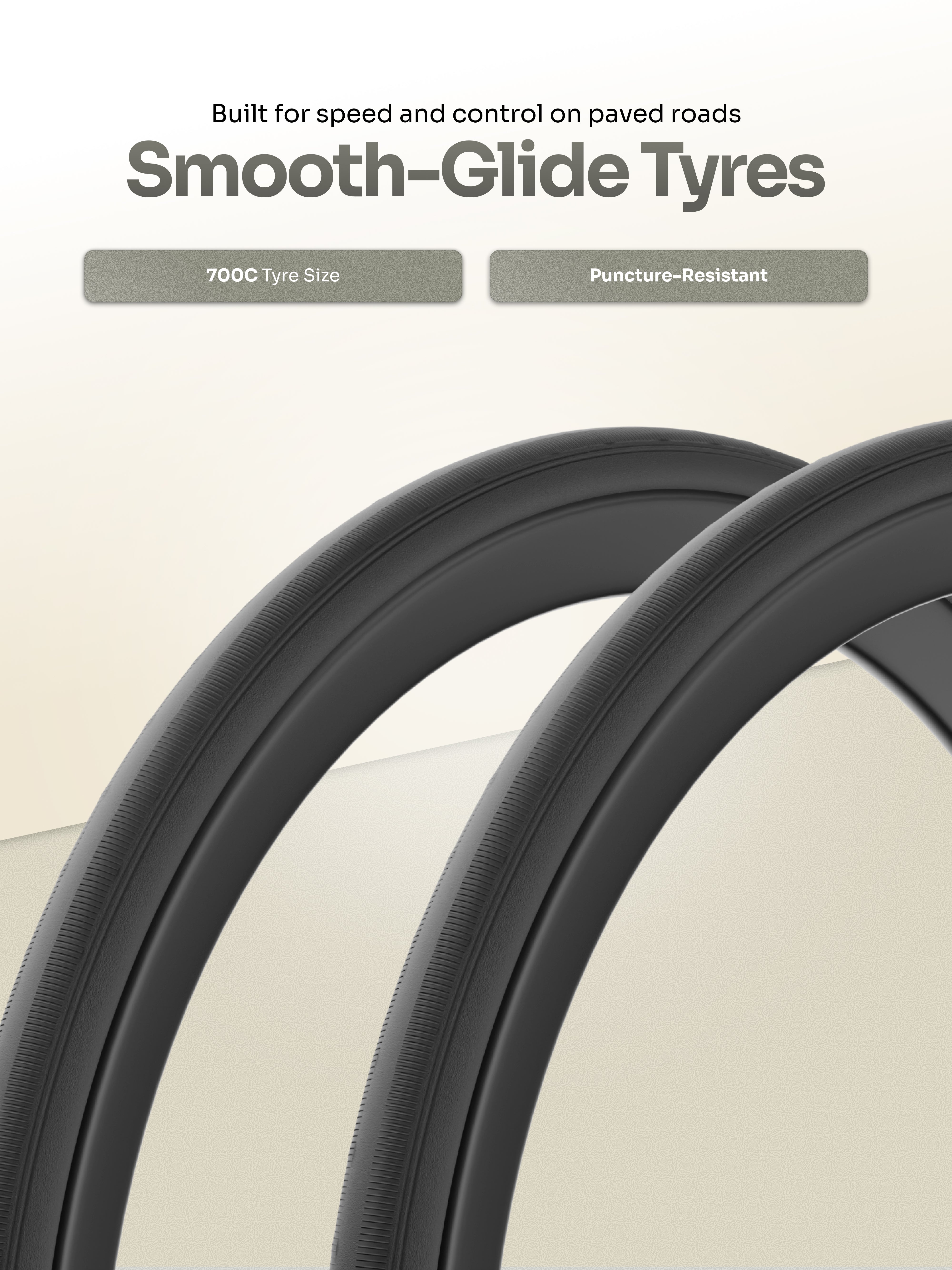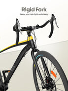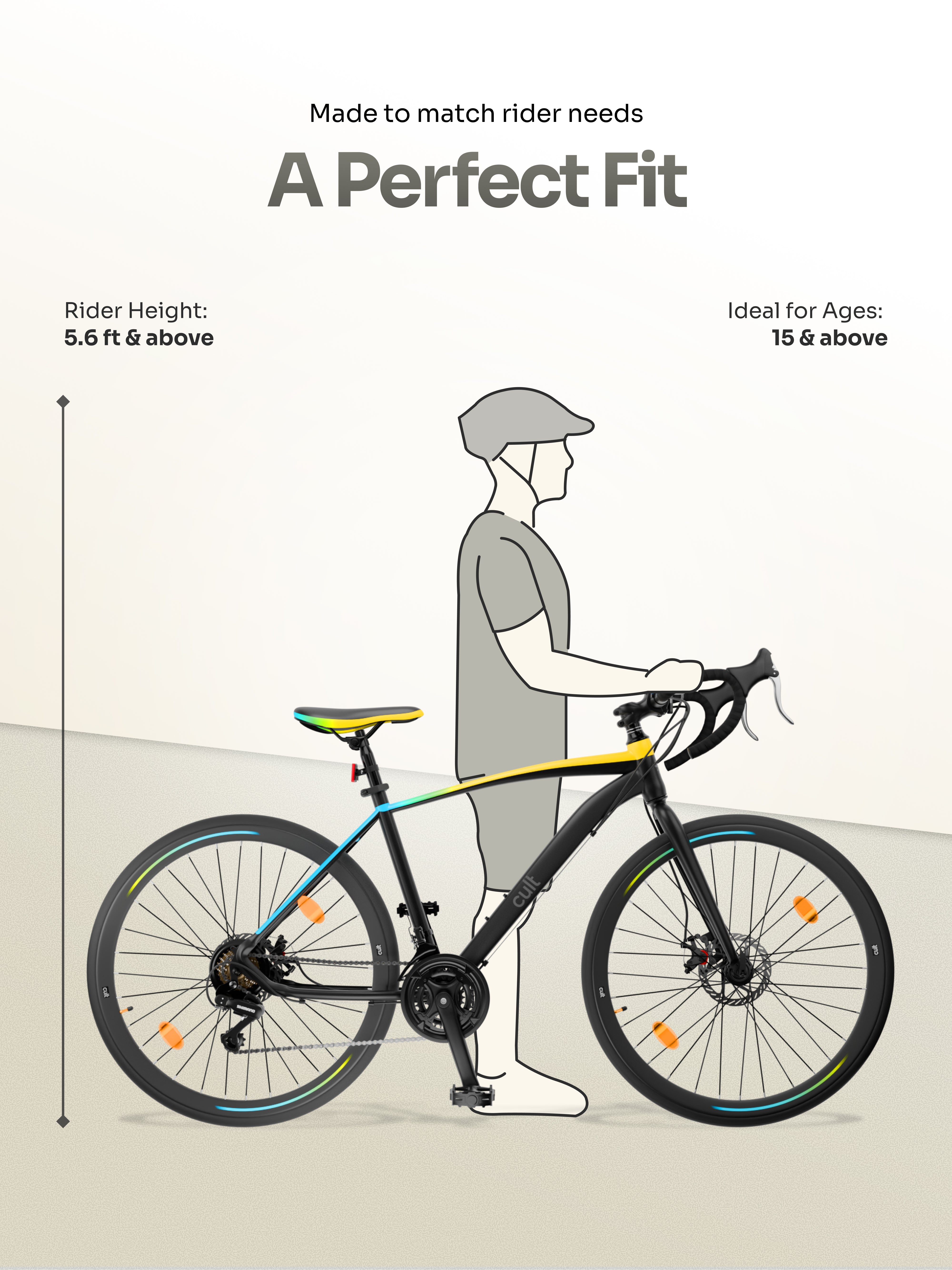 The Cult 700C Road Bike is designed for speed, performance, and everyday commuting. Built with a sturdy 18-inch steel frame and ideal for riders 5.6 ft and above, it offers smooth control with its 21-speed Shimano gears and thumb shifters. The double disc brakes, triple-wall alloy rims, and rigid fork ensure stability and powerful braking on every ride. With quick-release options for the front tire and seat, plus added accessories like a cadence sensor and reflectors, this bike is perfect for fitness rides, long routes, and daily city travel.