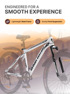 Galaxy Max Mountain Bike Steel 7 Speed Cycle 26 inch Tyre, White With Front Suspension, Single Wall Rim and Dual Disc Brakes Ideal For 5 ft to 5.7 ft