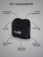 cult Ankle Weight Bands Black For Gym and Training Resistance Bands for Men & Women Pair of 2 (2 kg each)