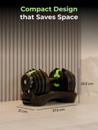 Cult 16kg Adjustable Dumbbell | 12 Weight Options (1.5kg-16kg) | Quick Weight Adjustment Dial | Non-Slip Compact Home Gym Dumbbell - Black