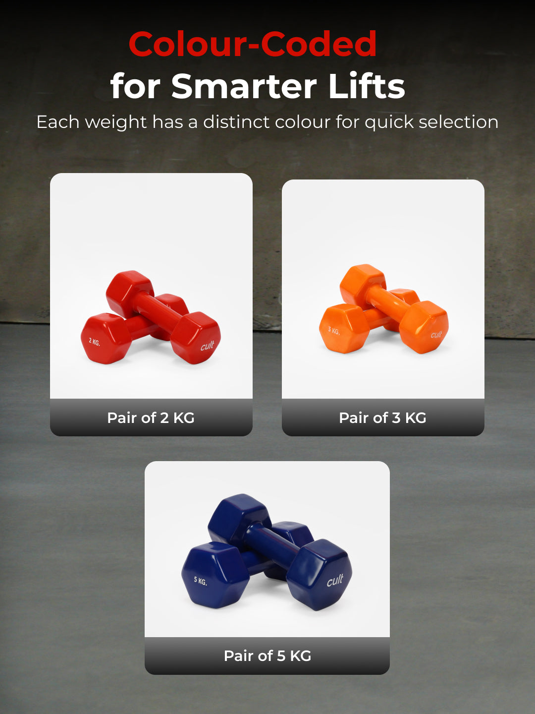 Cult Vinyl Dumbbells Combo for Home Gym Exercise (2kg + 3kg + 5kg Set) 20kg | Dumbbells with Rack