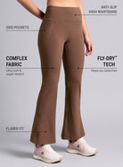 Bring the flow to every move with the Women's COMFlex Brown Performance Flare Pants, designed for comfort and control. The FLY-DRY™ fabric wicks away sweat for quicker evaporation, keeping you cool through every rep. The COMFlex fabric offers ultra-soft stretch for unrestricted training. The anti-slip high waistband keeps the fit secure, while side pockets carry essentials with ease. The flared fit finishes the look with a modern edge.