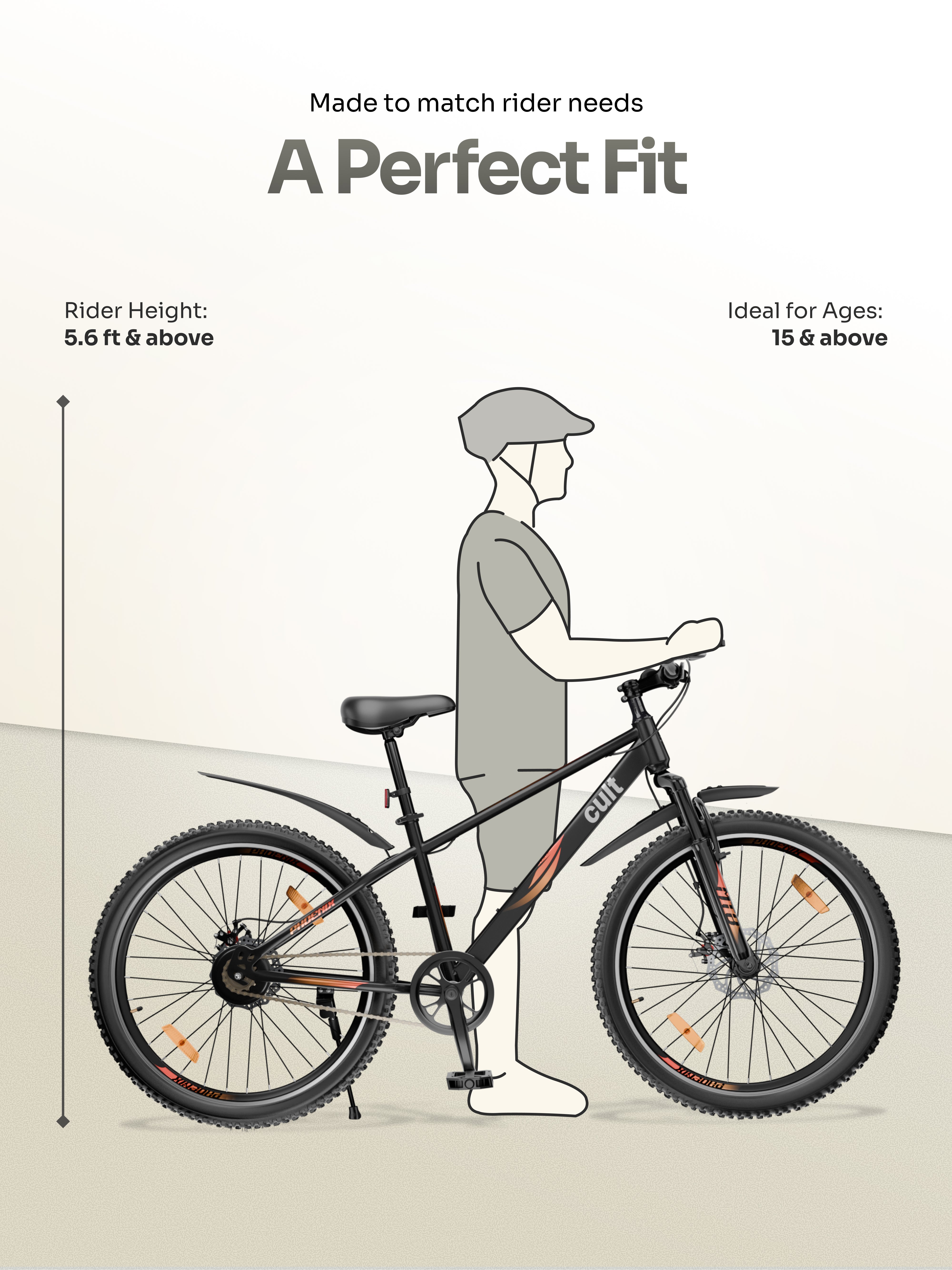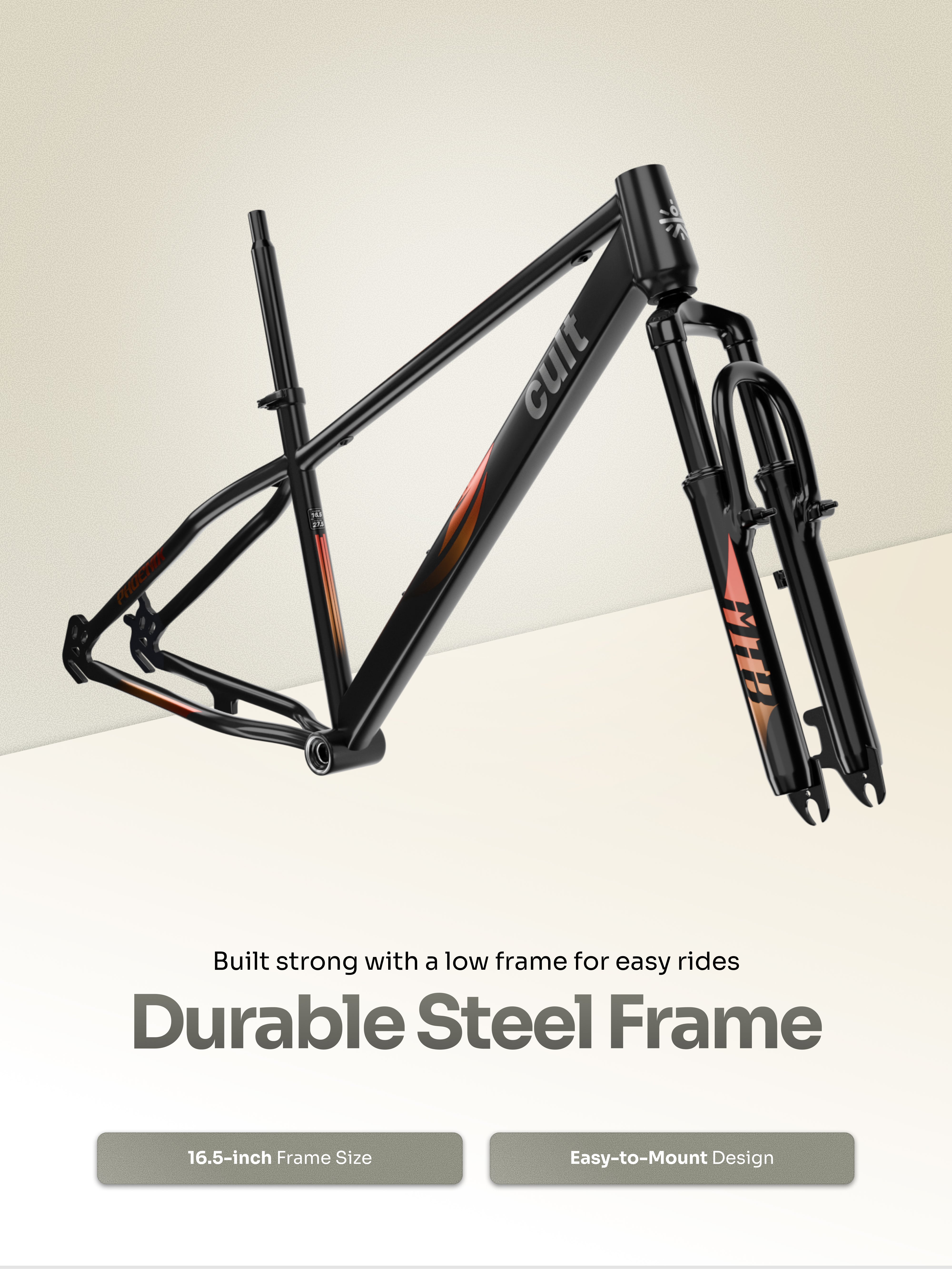 29T Mountain Bike designed for city rides, trails, and daily commutes.||Strong steel frame with a comfortable 16.5-inch frame size for stable handling. ||Front suspension for smoother rides on uneven roads and bumps.|| Single-speed drivetrain offering low maintenance and easy use||Reliable disc brakes ensure confident braking. || Double-wall alloy rims provide enhanced durability and long-lasting performance.|| Quick-release seat post for easy height adjustment. || Sleek and stylish Black colour finish. || Ideal for beginners, fitness riders, and everyday use. || This product is brought to you by the cult.