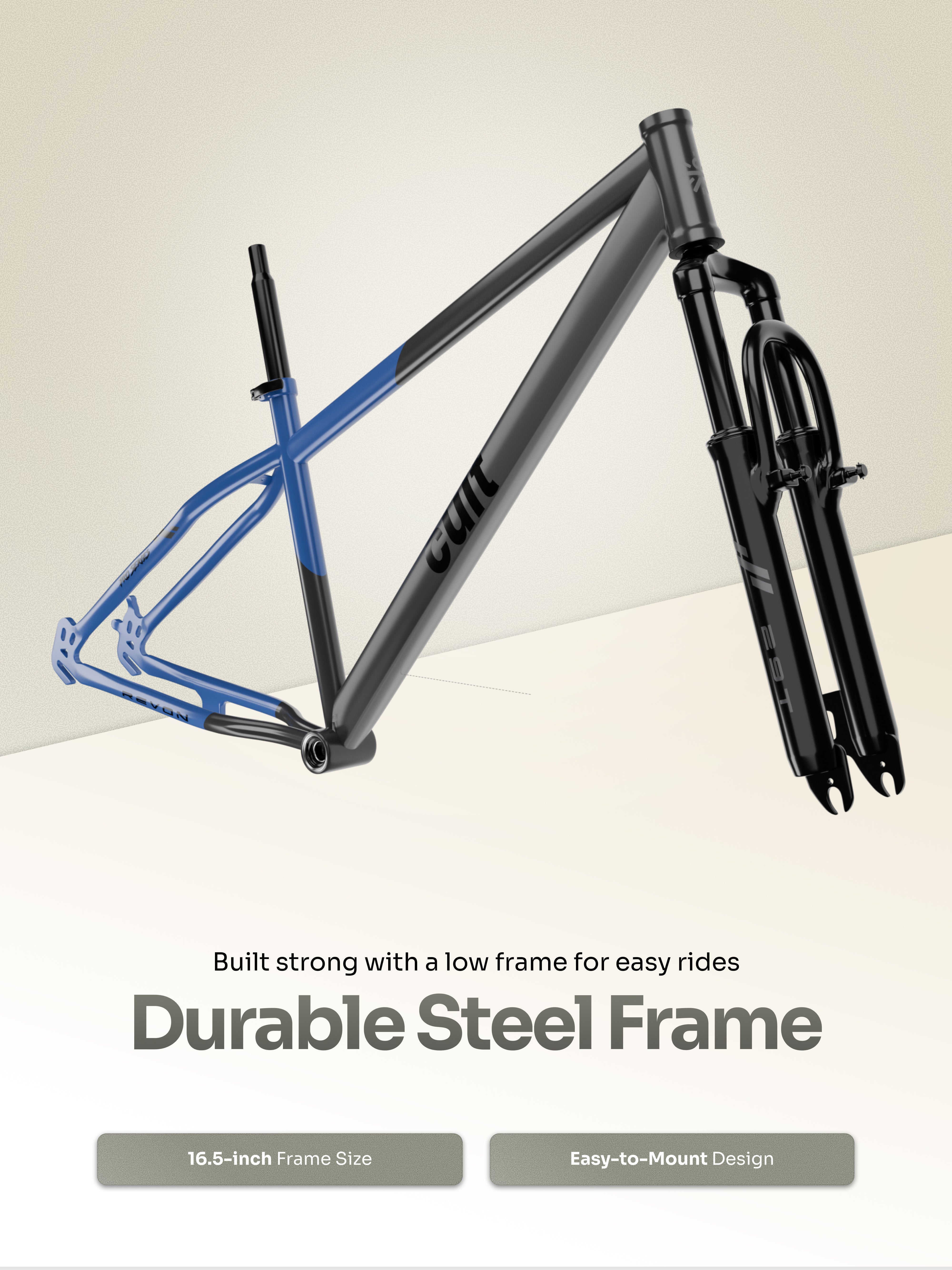 Experience a smooth and comfortable ride with the Cult Revon 29T Single Speed Mountain Bike, designed for daily commutes and weekend adventures.|| Built with a durable steel frame, this MTB ensures stability and strength on varied terrains.|| The front suspension absorbs bumps and uneven surfaces, providing better control and an effortless riding experience.||Equipped with reliable single-speed gearing, the Revon offers a hassle-free setup that requires minimal maintenance|| This product is brought to you by the cult