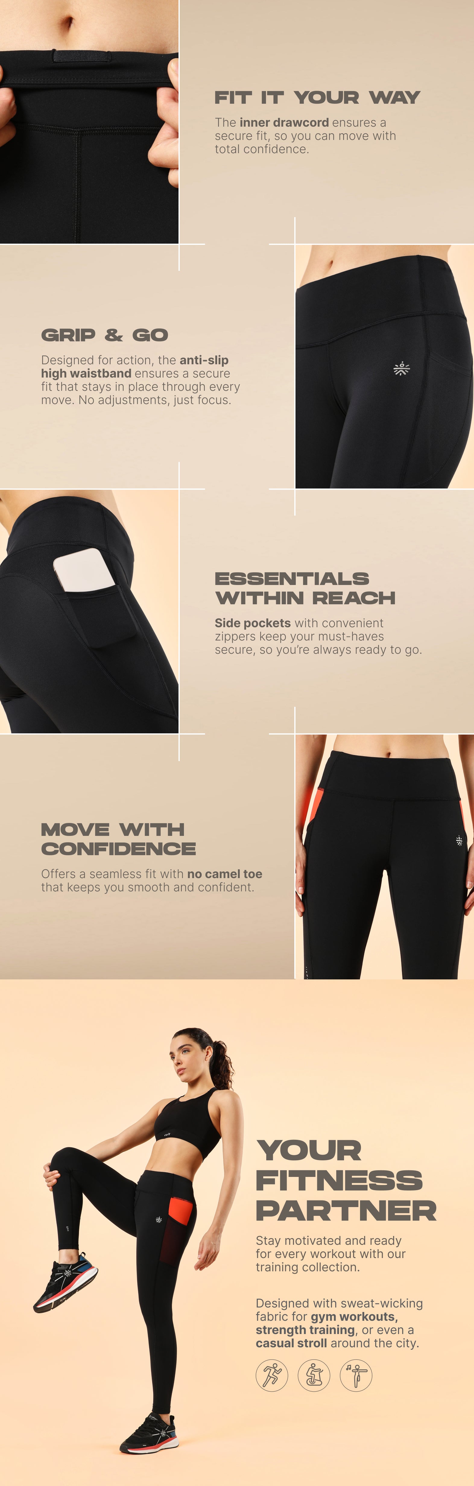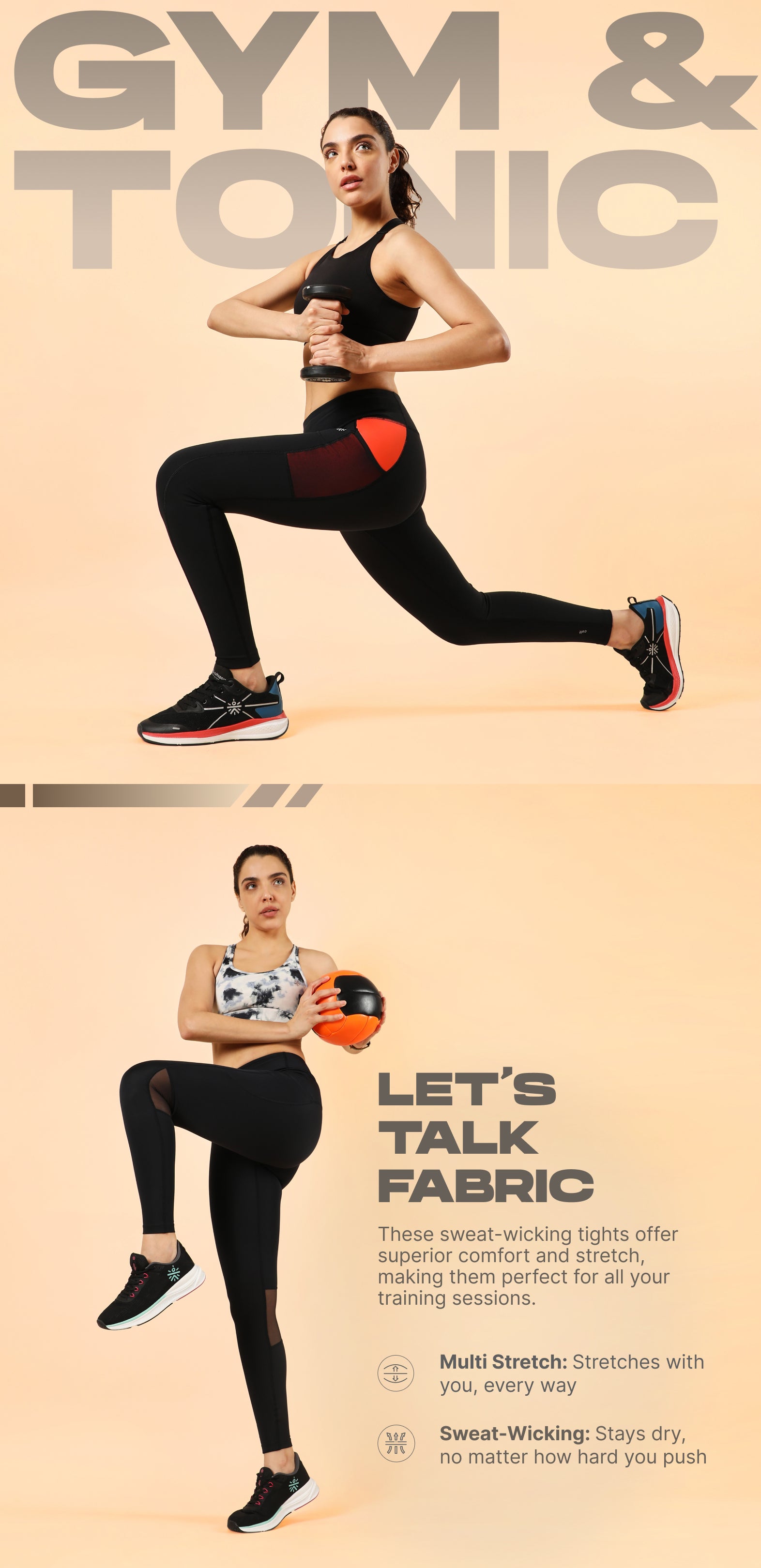 Reinvent your workoutfit with AbsoluteFit. Add an edgy look to your workout wardrobe with the AbsoluteFit Solid Leggings with breathable mesh panel at back knee, odour resistance and Fly Dry technology to wick away sweat as keep up to your workout game.