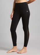 Absolute Fit Solid Black Yoga Tights with Sheer Mesh Panels