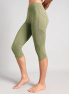 Women's Olive Yoga Flow Cotton Cropped Tights