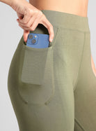 Flow into every pose with the Women's Olive Yoga Flow Cotton Tights, designed for comfort and effortless movement. Made with soft cotton-lycra, they combine cotton softness with flexible stretch for ultimate ease and flexibility. The anti-slip high waistband gives a secure fit, while the no-camel-toe design ensures smooth, distraction-free movement. The side pockets add convenient storage without breaking your focus.