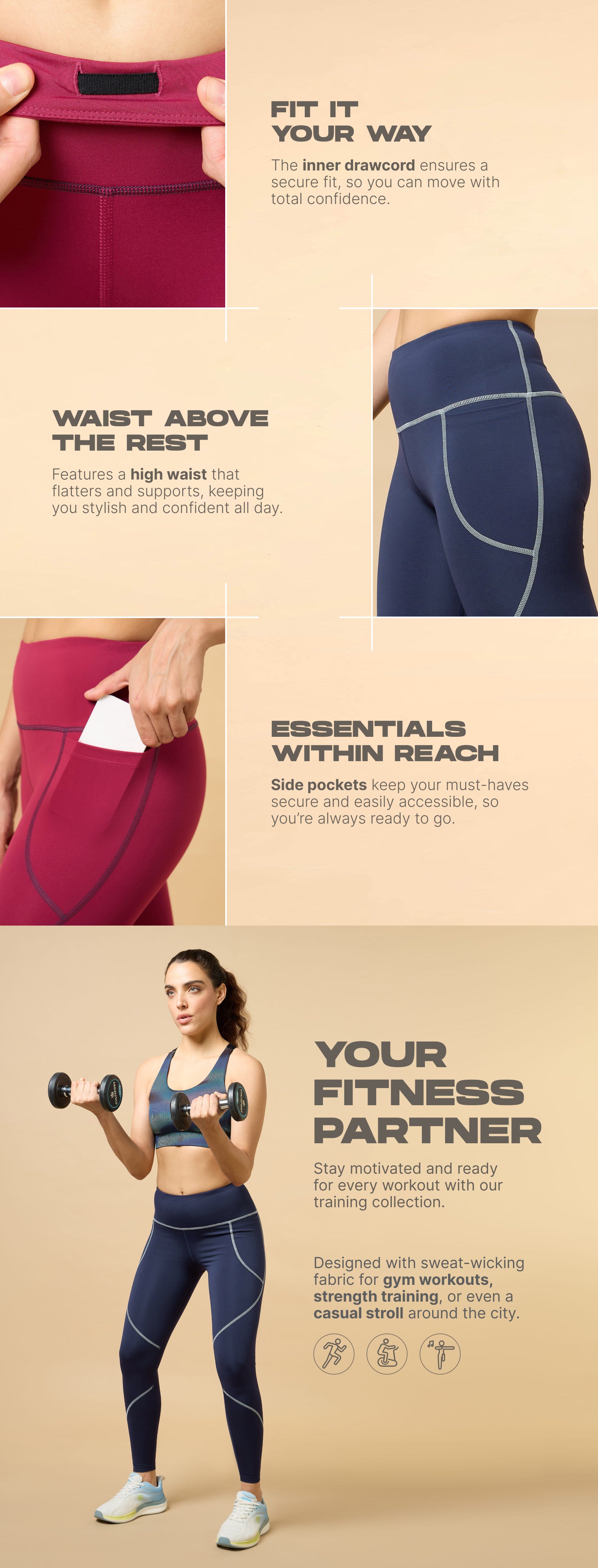Move with confidence in these Women's Red True Performance Sculpted COMFlex Tights. Crafted from ultra-comfy COMFlex fabric for a smooth, flexible fit. Features an anti-slip high waist and inner drawcord to keep your fit secure, while side pockets add convenience for your essentials. Designed with a no camel toe offers sleek look and a holographic logo at the back for a stylish touch.