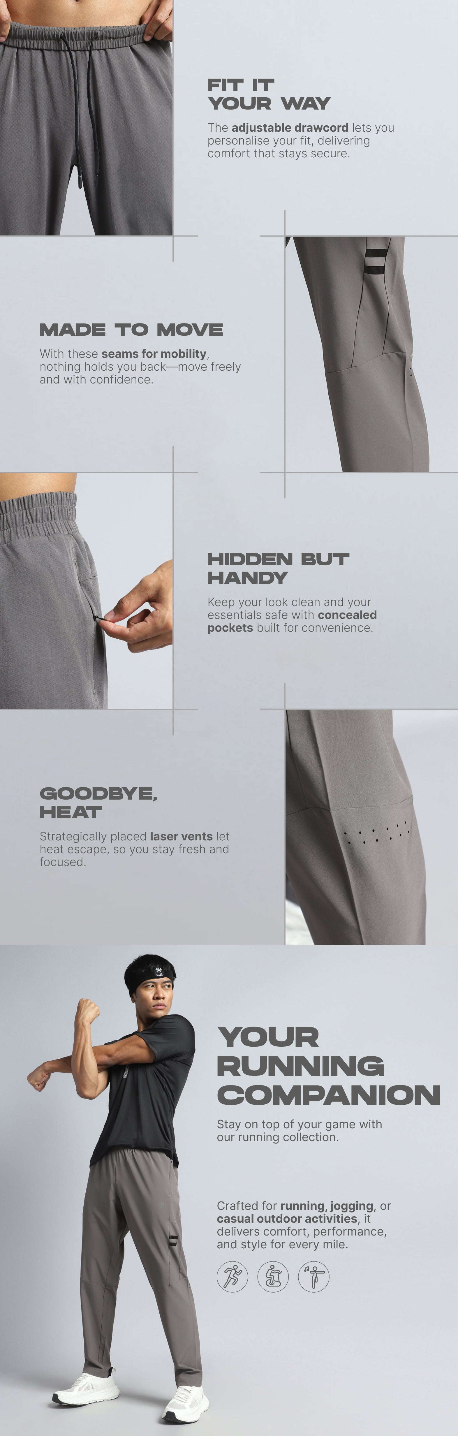Run fast, stay fresh in the Men's Dark Grey Impact Running Trackpants. FLY-DRY™ tech keeps sweat in check, so you stay cool and dry through every session. The adjustable drawcord ensures a secure fit, while concealed zipper pockets keep your essentials safe. Laser-cut vents enhance breathability, making sure comfort never takes a backseat.