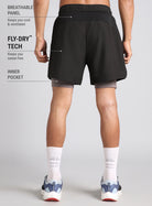 Sweat less, achieve more. The Men's Black 360 Degree Performance Shorts in olive combine lightweight, breathable Flydry fabric with inner tights for unrestricted mobility. Perforated waistband keeps you chafe-free, while inner pockets secure your essentials. Ditch limitations, dominate your workout.