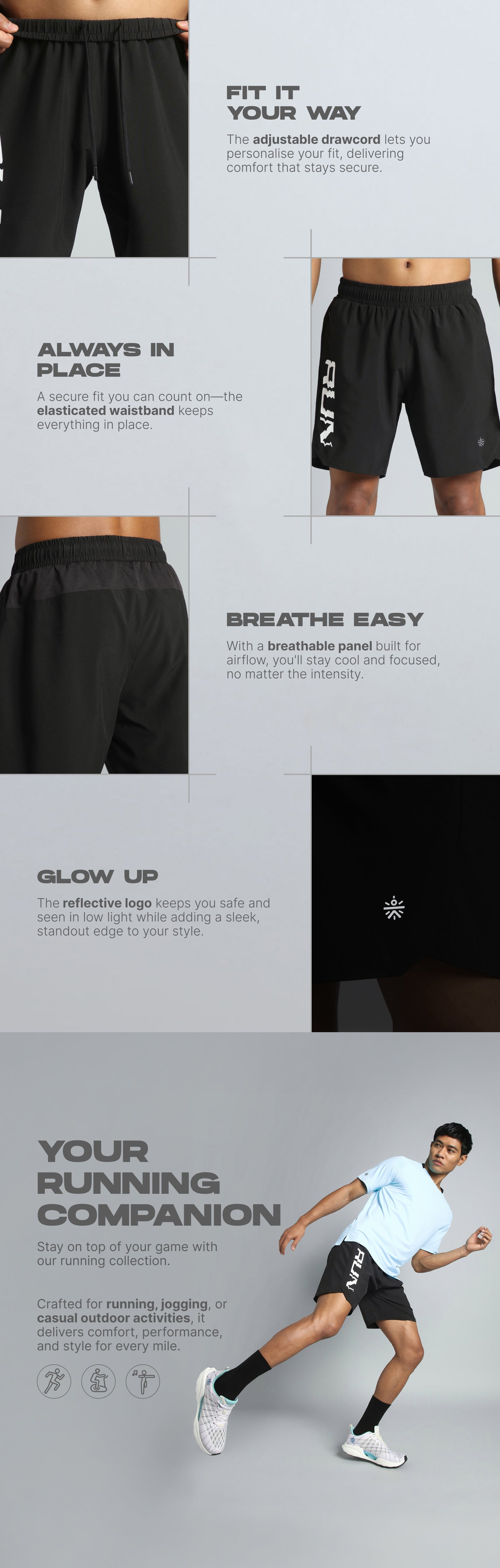 Hit your stride with the Men's Black Everyday Run Shorts, built for comfort and movement. Made with Flydry fabric that wicks away sweat and keeps you cool. Features a breathable back panel for a breezy vibe while you are on your run. Designed with an elasticated waistband and inner drawcord for a secure fit. Finished with a reflective logo for added visibility during low-light areas.