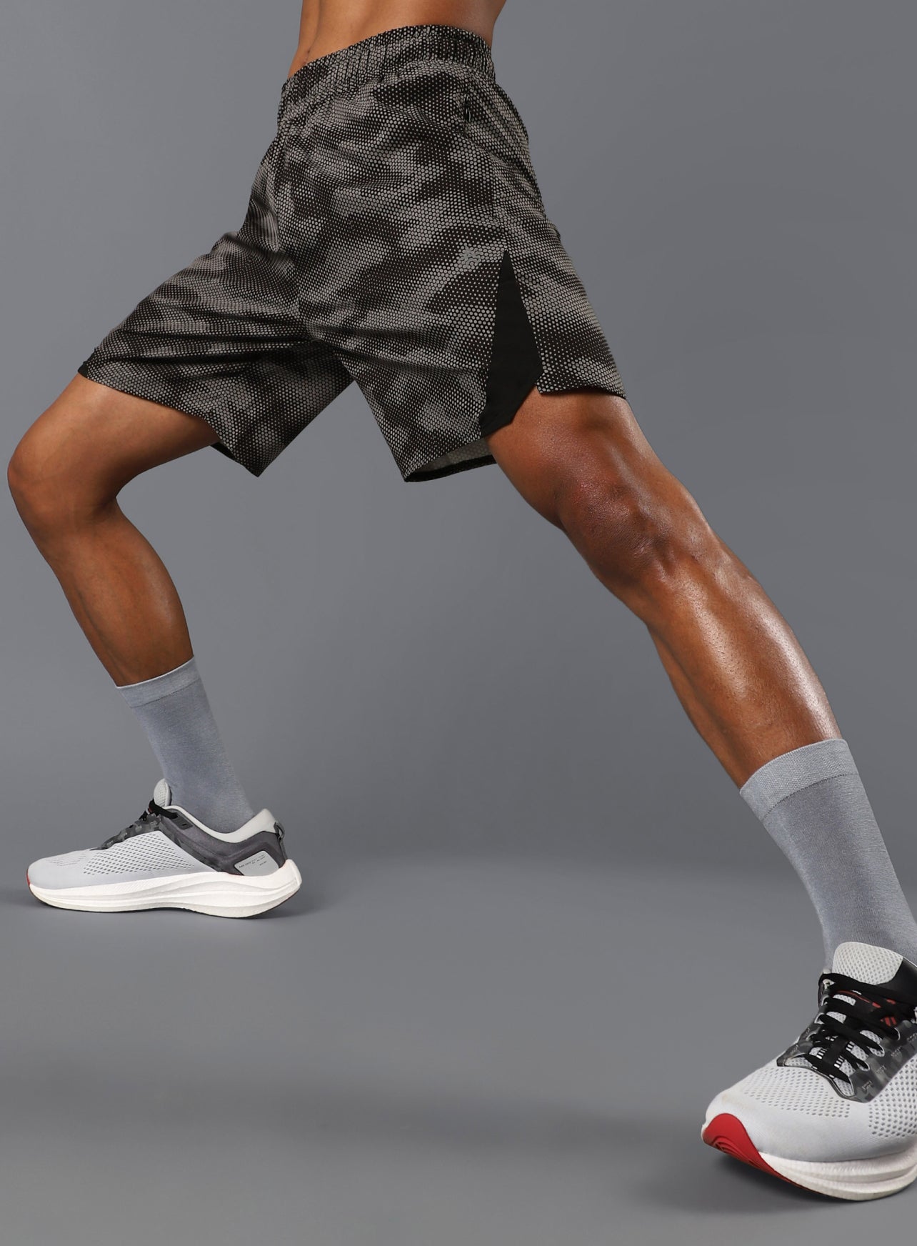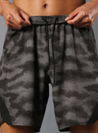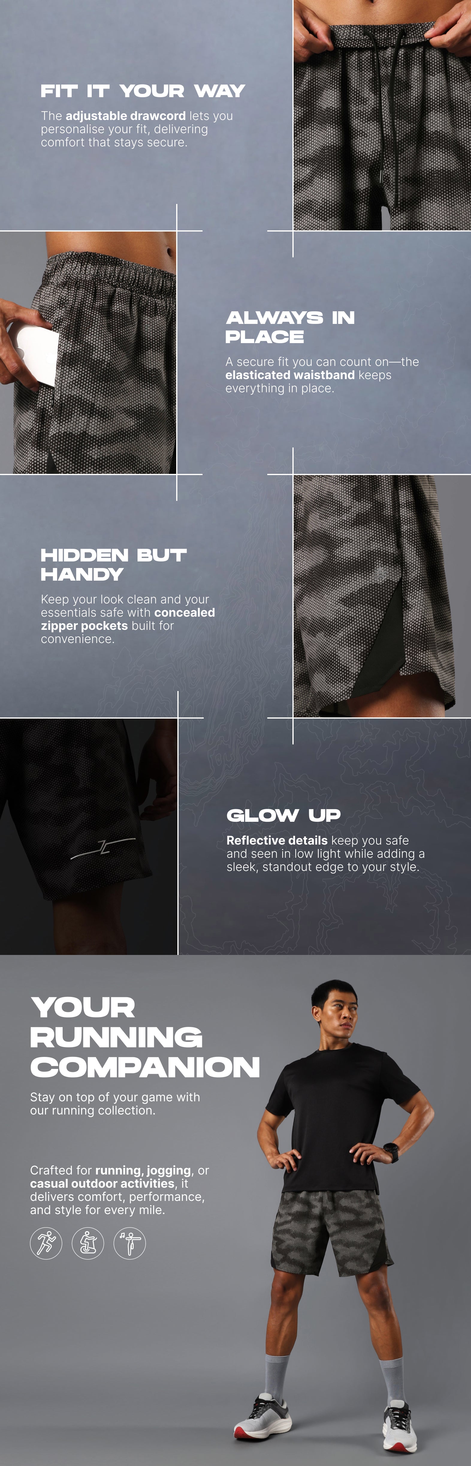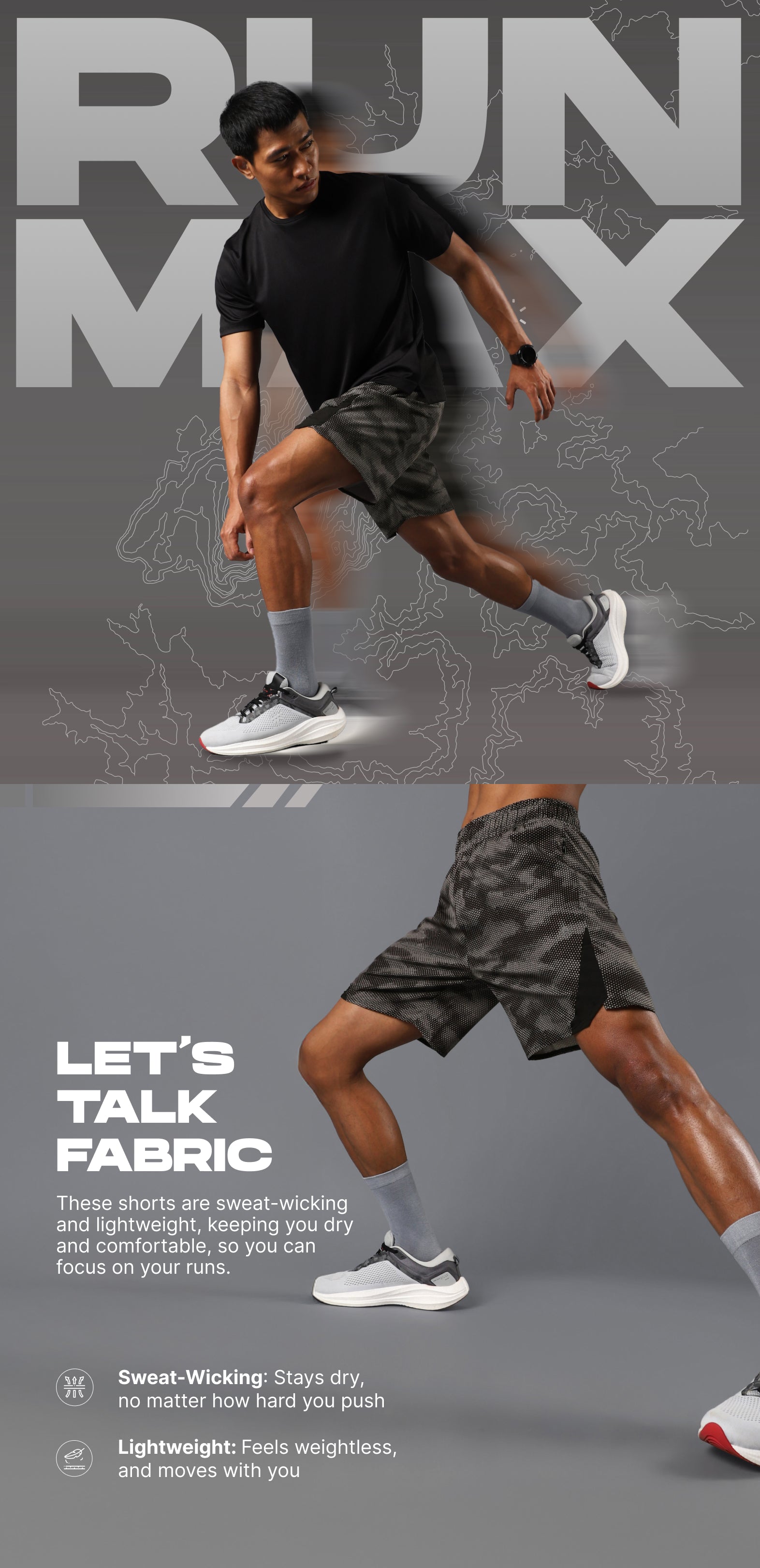 Amp up the pace with the Men's Black Landscape Camo Run Shorts. FLY-DRY™ tech wicks away sweat to keep you cool and dry. The lightweight fabric enhances breathability for unrestricted movement. The inner drawcord fine-tunes the fit, while the concealed side pockets offer storage without the bulk.