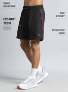 Own every sprint in the Men’s Black Pacer Running Shorts. Crafted with lightweight fabric and FLY-DRY™ tech, they wick away sweat and keep you moving cool and dry. The elasticated waistband and inner drawcord offer a secure fit. The breathable back panel boosts airflow, while the side pockets add functional storage. The reflective details enhance visibility on low-light runs.