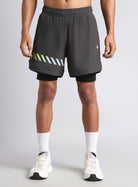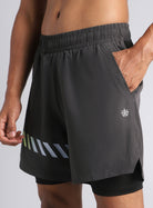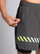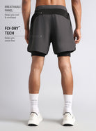 Sweat less, achieve more. The Men's Dark Grey 360 Degree Performance Shorts in olive combine lightweight, breathable Flydry fabric with inner tights for unrestricted mobility. Perforated waistband keeps you chafe-free, while inner pockets secure your essentials. Ditch limitations, dominate your workout.