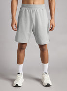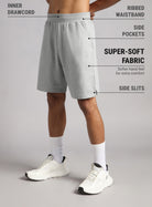 Take on every rep in the Men's Grey Train In Shorts—built for ease, comfort, and the daily grind. Made from super-soft fabric, they feel smooth and gentle against the skin. The elasticated waistband and inner drawcord offer a secure, adjustable fit. The side pockets keep essentials within easy reach, while the welt pocket at the back adds extra storage.