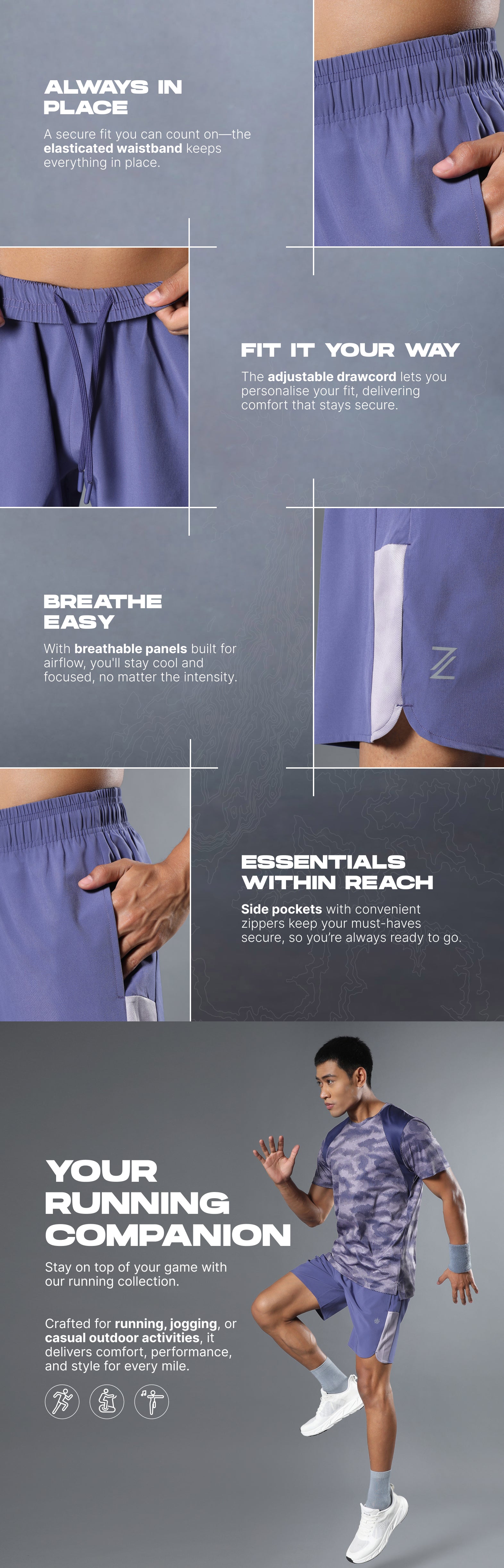 Chase your best run yet in the Men's Purple Pace Up Runner's Shorts. Made from FLY-DRY™ tech, these shorts wick away sweat to keep you dry, while breathable panels boost airflow for a fresh feel. The adjustable drawcord ensures a snug fit, so you can focus on speed, not distractions. With side pockets for essentials, these shorts balance function and comfort.