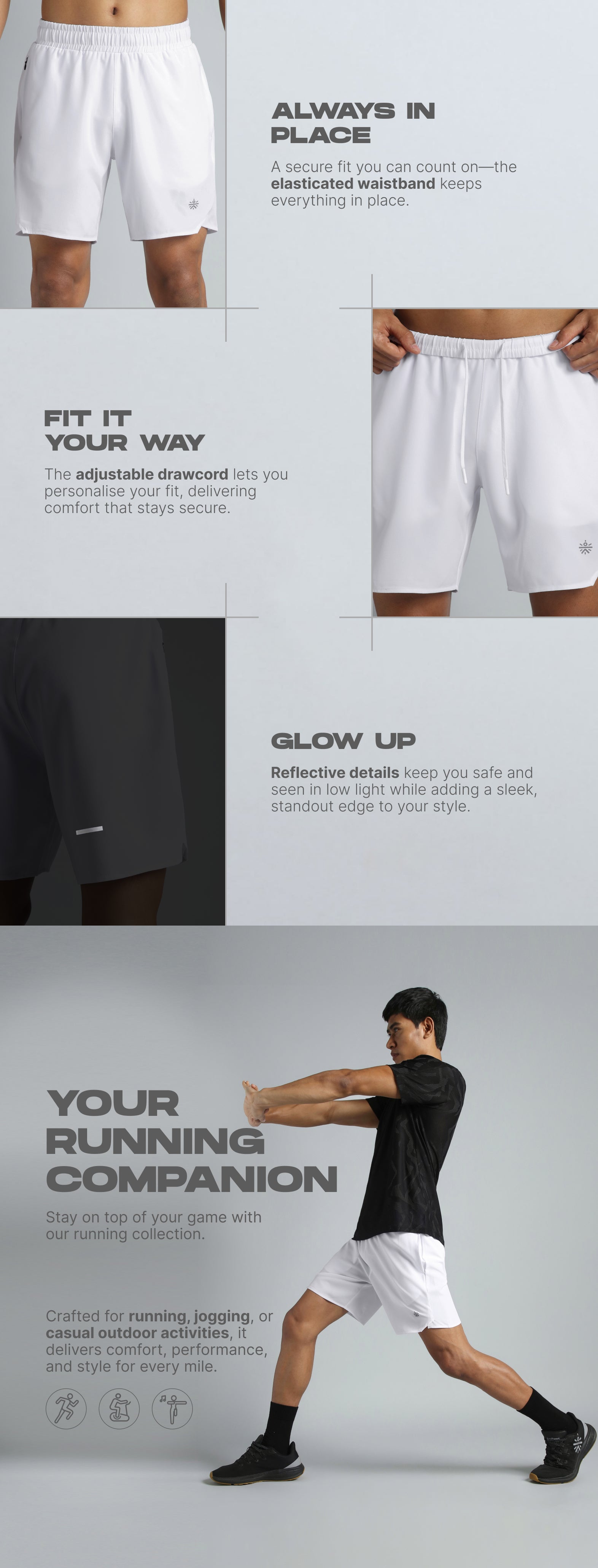 Go the distance in the Men's White Iconic Running Shorts. Powered by FLY-DRY™ tech, these shorts wick away sweat to keep you cool and focused. The lightweight fabric delivers breathable comfort, while the elasticated waistband and inner drawcord ensure a secure, adjustable fit. The side pockets provide easy storage, so you can stay in motion without distractions.