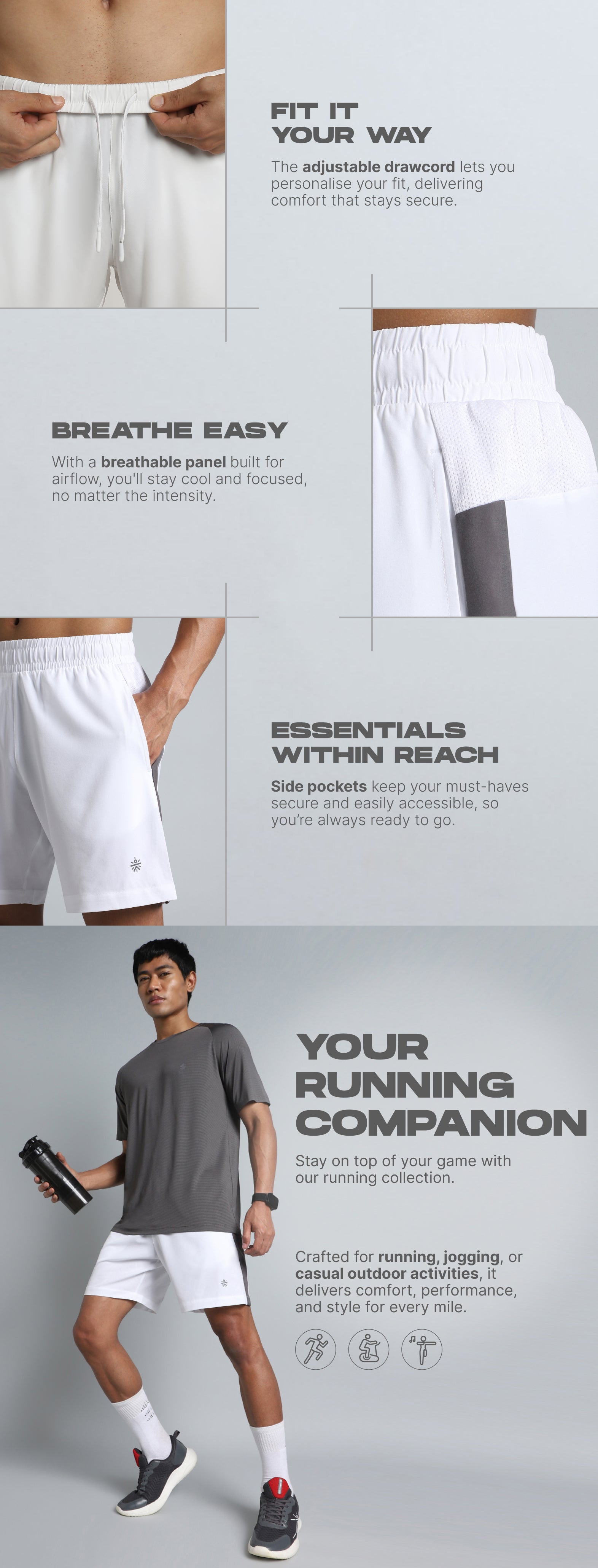 Own every sprint in the Men’s White Pacer Running Shorts. Crafted with lightweight fabric and FLY-DRY™ tech, they wick away sweat and keep you moving cool and dry. The elasticated waistband and inner drawcord offer a secure fit. The breathable back panel boosts airflow, while the side pockets add functional storage. The reflective details enhance visibility on low-light runs.