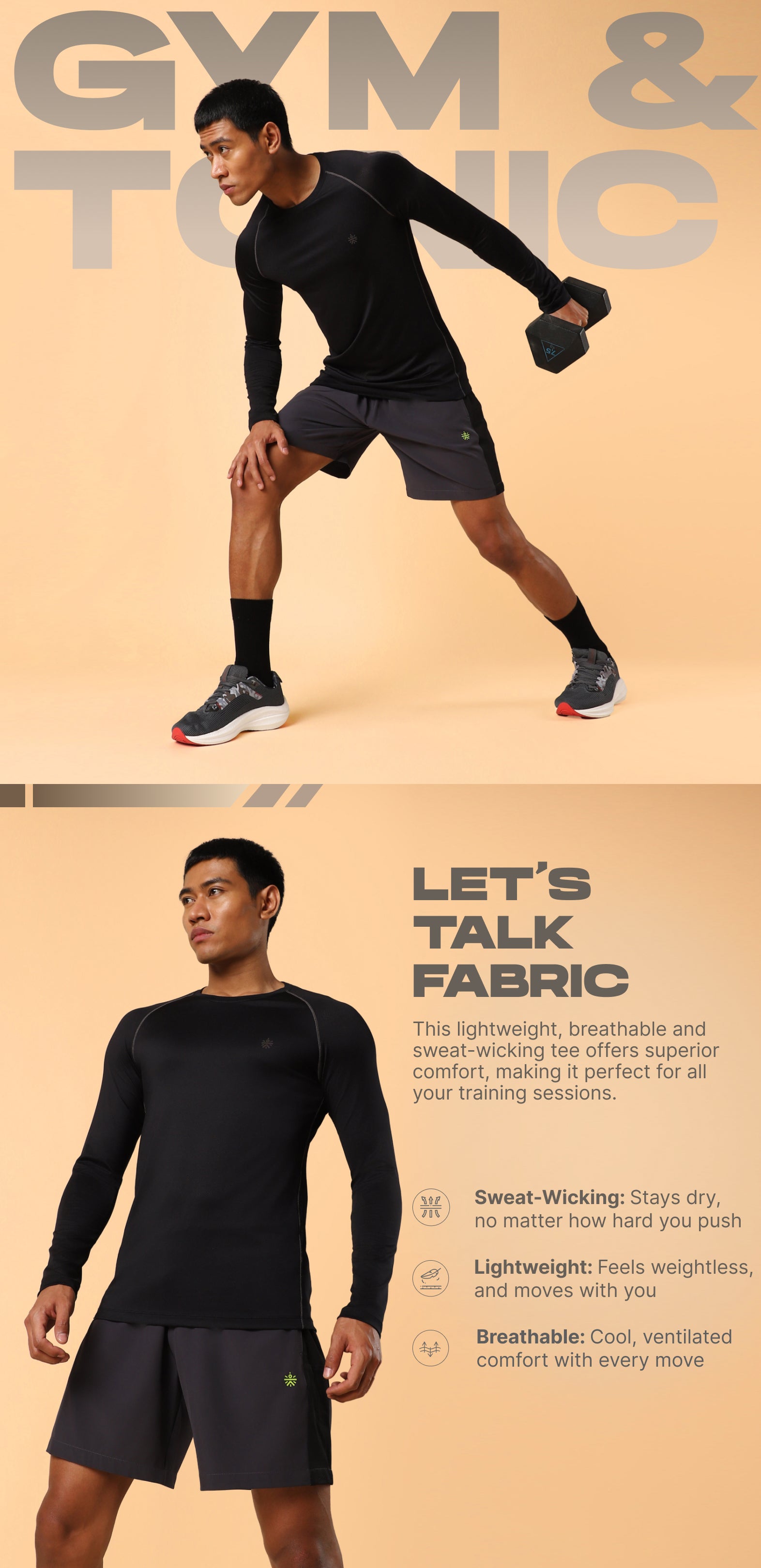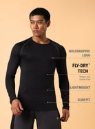 Break barriers and do it all in ultimate comfort with the Men's Black Performance Pro Base Layer T-shirt. Designed with FLYDRY™ tech that wicks moisture away to keep you dry and fresh. The lightweight, breathable fabric keeps you cool through every rep. The seams at the back allow full mobility, so you move without restrictions. Finished with a holographic logo, this tee blends performance with standout style.