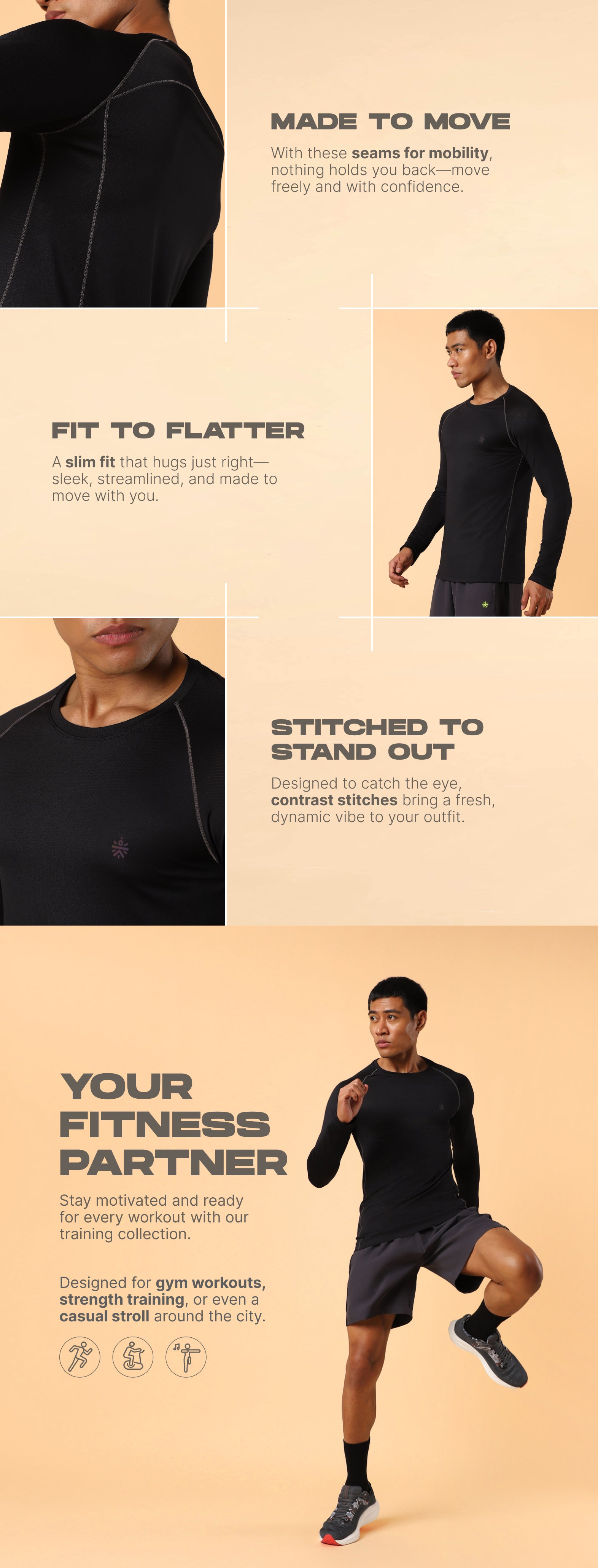 Men's Black Performance Pro Base Layer Slim Fit T-shirt