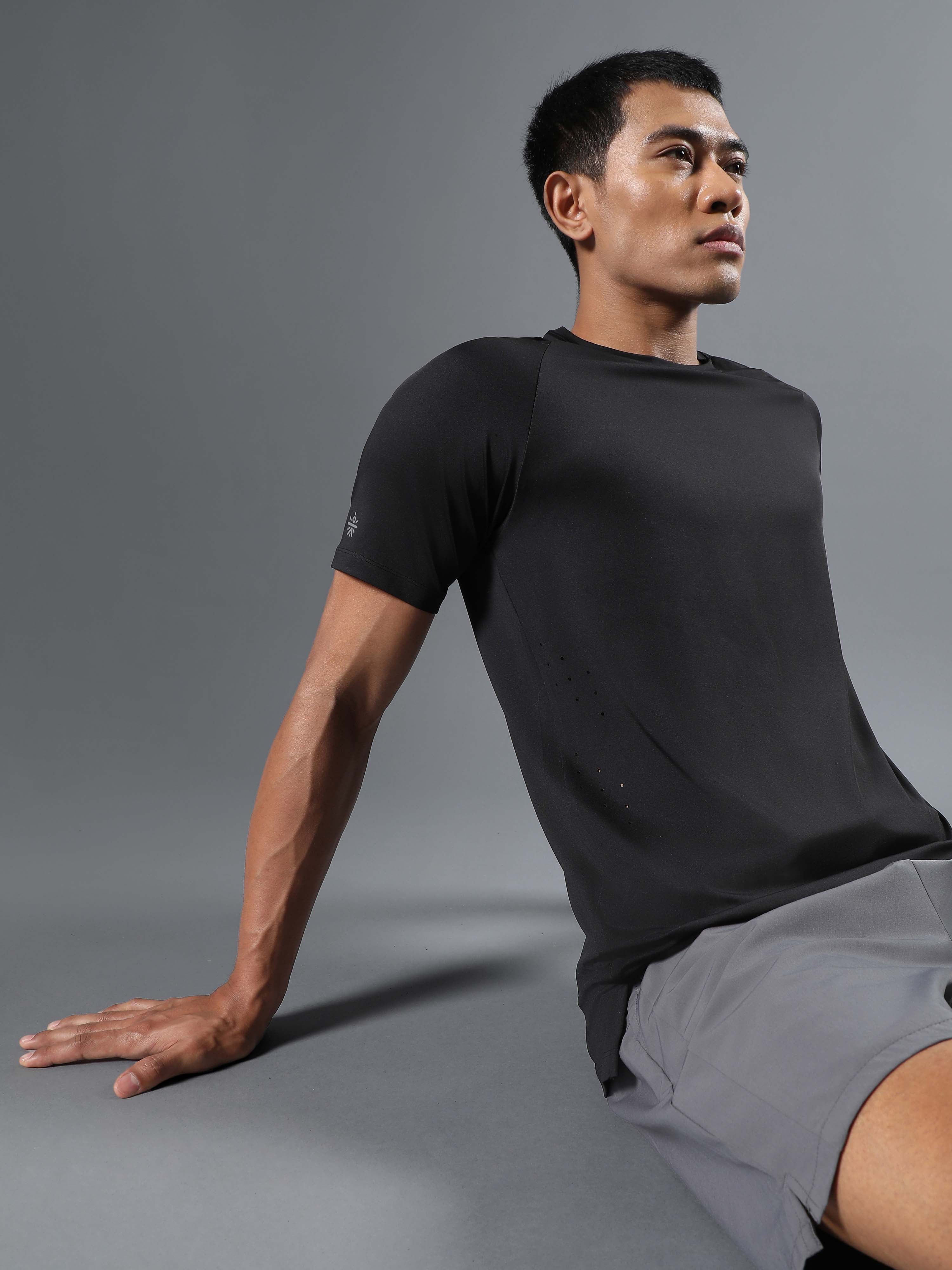 Go faster, feel lighter in the Men's Black Run Forward T-shirt. Made with FLY-DRY™ tech, this tee wicks away sweat to keep you dry, while super stretch fabric moves with you effortlessly. Raglan sleeves and side slits enhance mobility, and laser vents boost airflow for cool comfort.